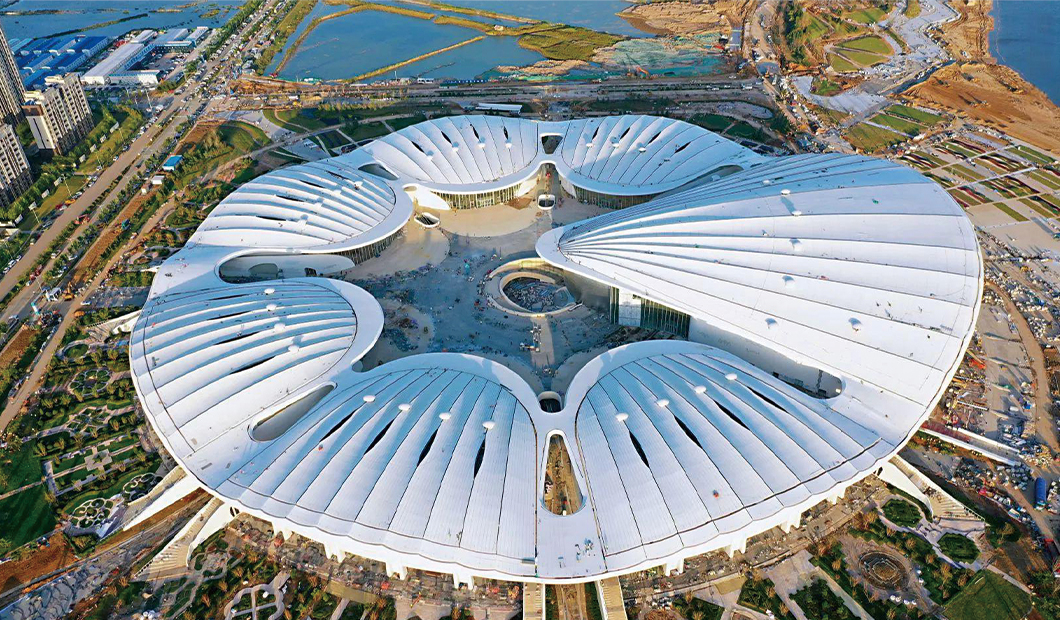 上合之珠国际博览中心青岛·上合之珠国际博览中心是集展、商、旅、文等多种业态为一体的商业综合体,是中国国内首个上合组织国家文化体验基地,位于青岛胶州市上合示范区,由综合馆、上合元素文化展示区、多功能馆、中心广场四部分组成,以“海汇繁花、珠贝生辉”为设计理念、开放包容的时代形象,有上合示范区“国家会客厅”之称。